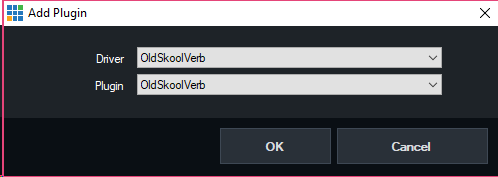 In the above example the free "OldSkoolVerb" plugin has been selected, which is an audio reverb plugin.