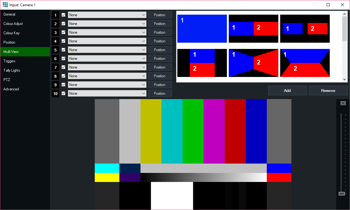 Each of these inputs can be positioned by dragging the windows within the preview box at the bottom of the window.