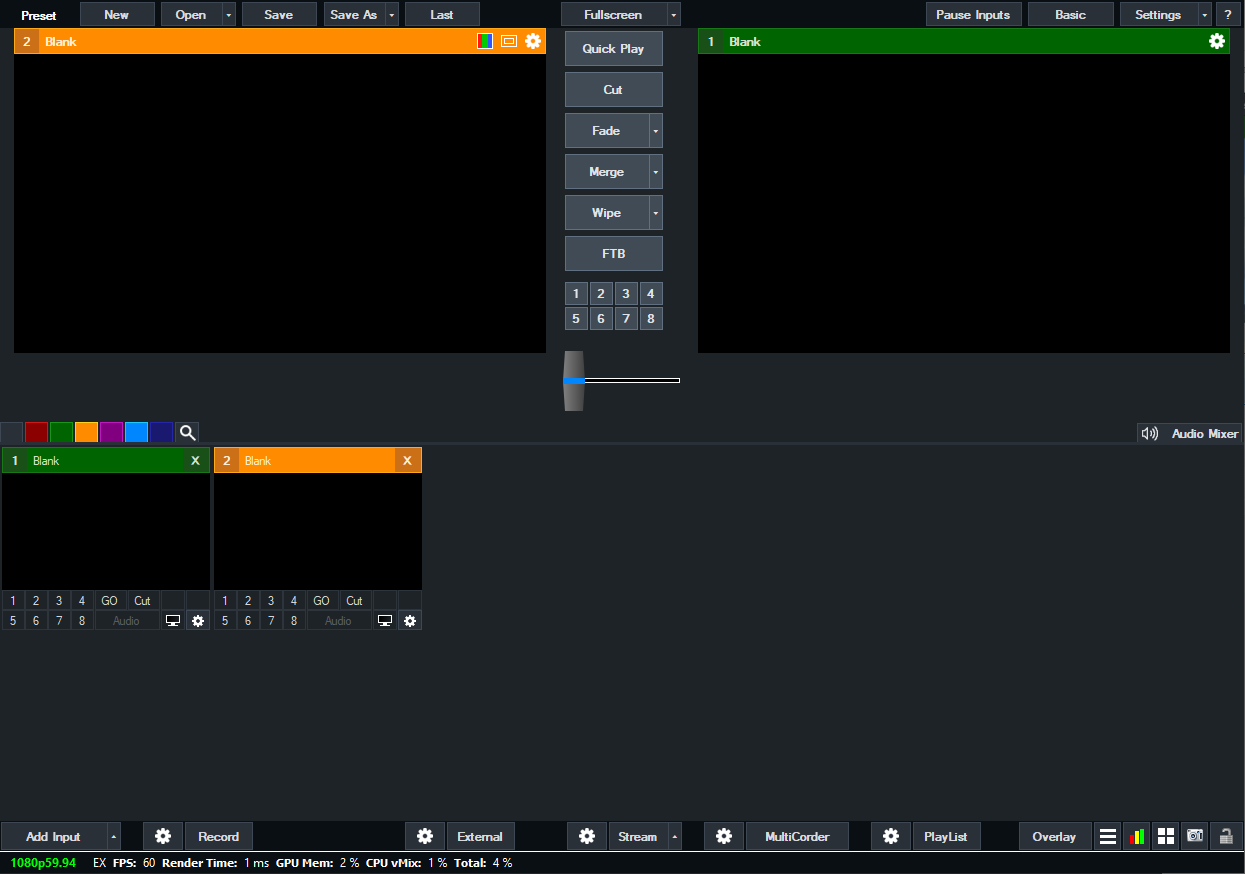 If you have used traditional video switchers before, the main window might look familiar.